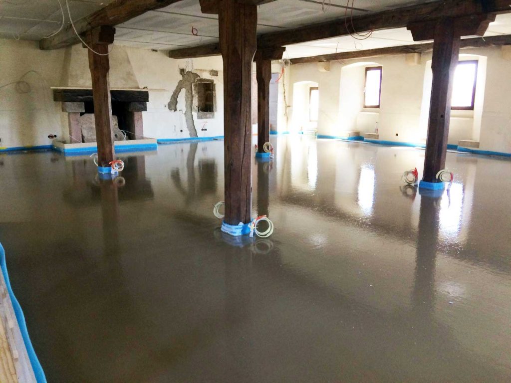 Chape fluide sur plancher chauffant rénovation : le Château de Bournazel, en Aveyron