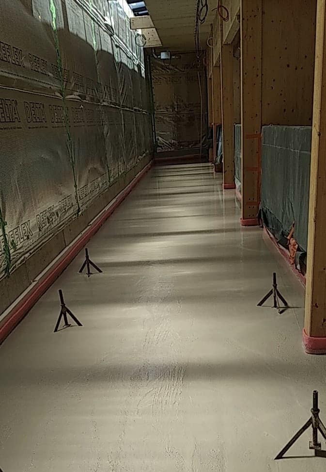 24 heures après le coulage de la chape, votre chantier reprend vie. C’est à dire que les autres corps de métier peuvent y accéder sans crainte.